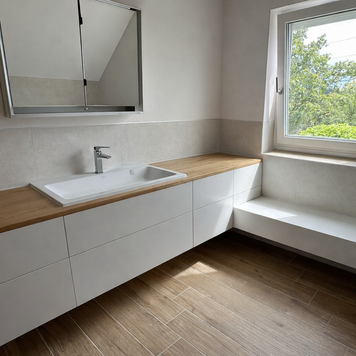 Wir gestalten nicht nur Möbel und Wohnräume – auch Bäder richten wir individuell und durchdacht ein. Von funktionalen Lösungen bis zu ästhetischen Details schaffen wir Räume, die praktisch, langlebig und stilvoll zugleich sind.